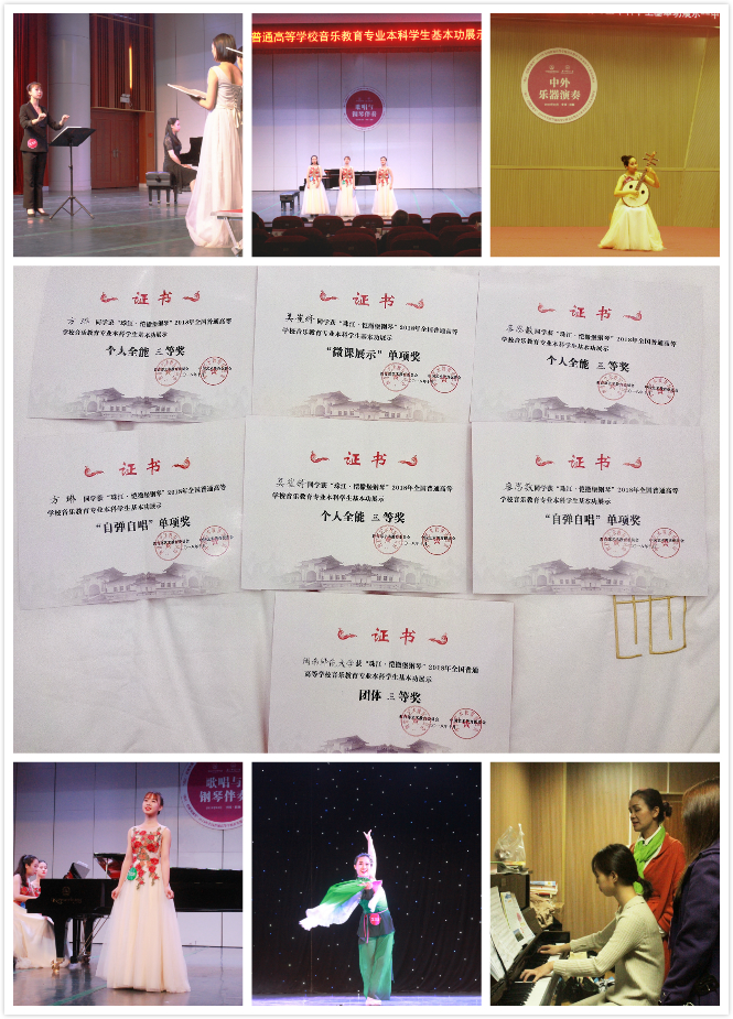10月26日,2018年全国普通高校音乐教育专业本科员工基本功展示在广西落幕。经过激烈的角逐,威廉希尔WilliamHill吴崔婷、廖思敏、方琳荣获“个人全能三等奖”。廖思敏、方琳获自弹自唱项目“个人单项奖”,吴崔婷获微课展示“个人单项奖”,公司荣获“学校团体三等奖”。