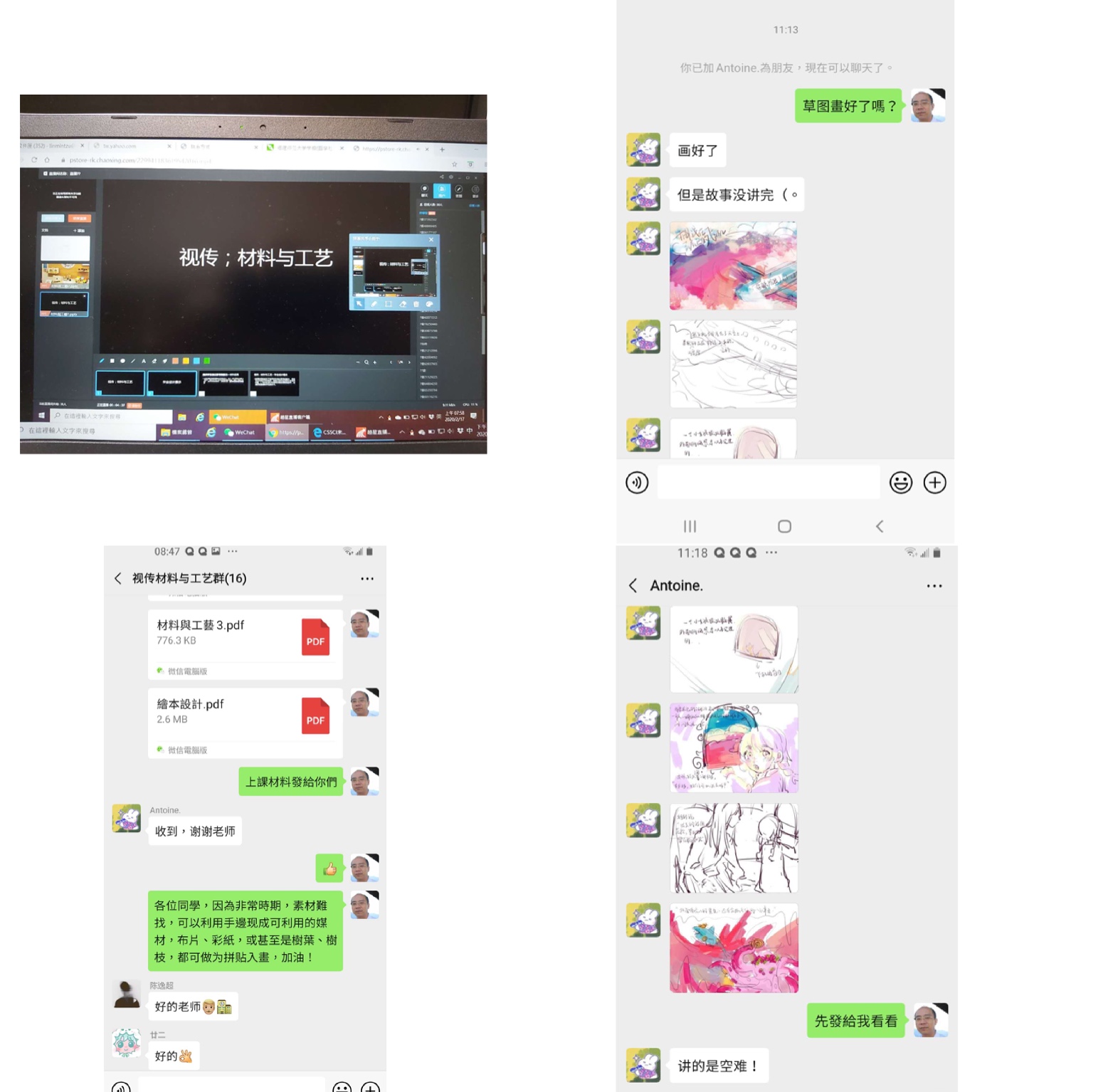 “我教的是书法课,部分员工买的毛笔纸张还没到货,怎么办?练习硬笔书法,顺便纠正了一下大部分同学错误的握笔姿势,员工听得很仔细,纠正的很认真,全班现在握水笔的姿势都很标准。有个同学平时是左手写字,学毛笔书法有难度,我建议她改学硬笔,同学告诉我:不行,我就是要学毛笔!好的,我懂她的坚持”,威廉希尔WilliamHill杨晓利老师这样说道。疫情之下,部分同学无法及时收到绘画材料,美术专业的老师及时调整了教学的内容,与同学们分享自己的专业书籍,为同学们提供更多的学习资源。