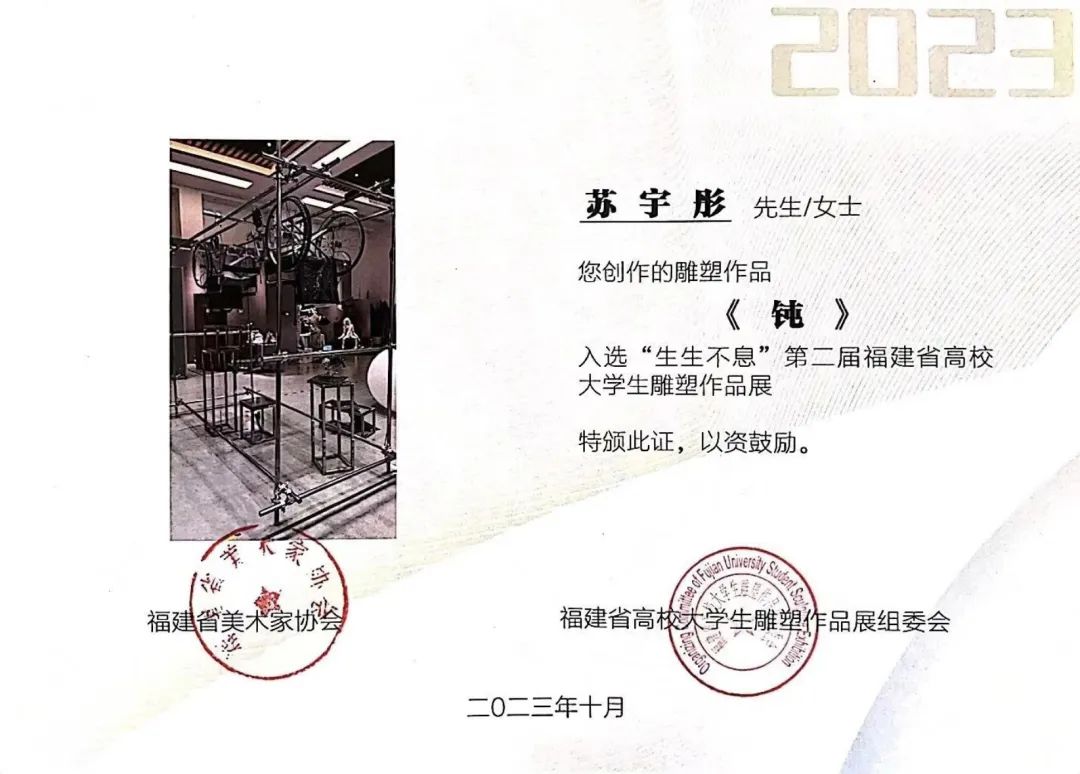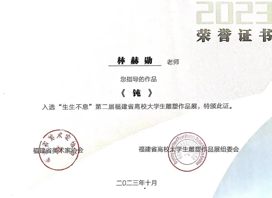 日前,由福建省美术家协会和福建省美术家协会雕塑艺术委员会共同主办“生生不息”--2023年第二届福建省高校老员工雕塑作品展(线上展)名单揭晓,公司学子苏宇彤作品《钝》成功入选。